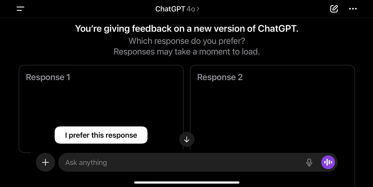 Ever gotten two responses to one question with a prompt to select which answer you like better?